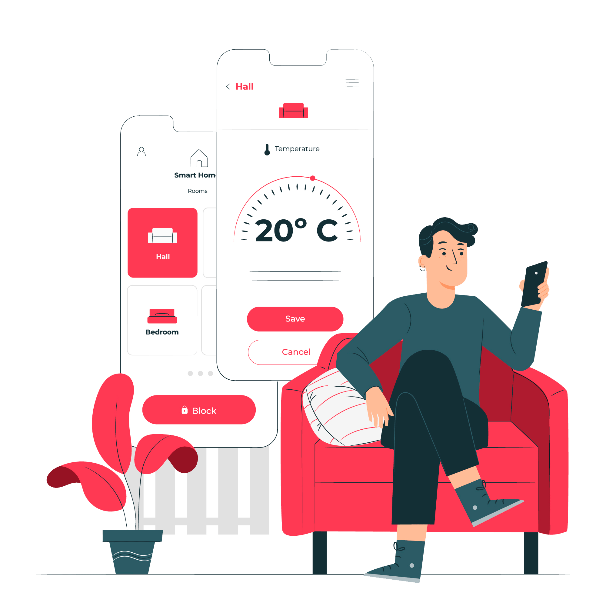 Nos thermostats connectés se présentent sous la forme de boîtiers blancs, discrets, installés sans travaux en dessous ou sur le côté de vos radiateurs, qu’ils soient neufs ou anciens.